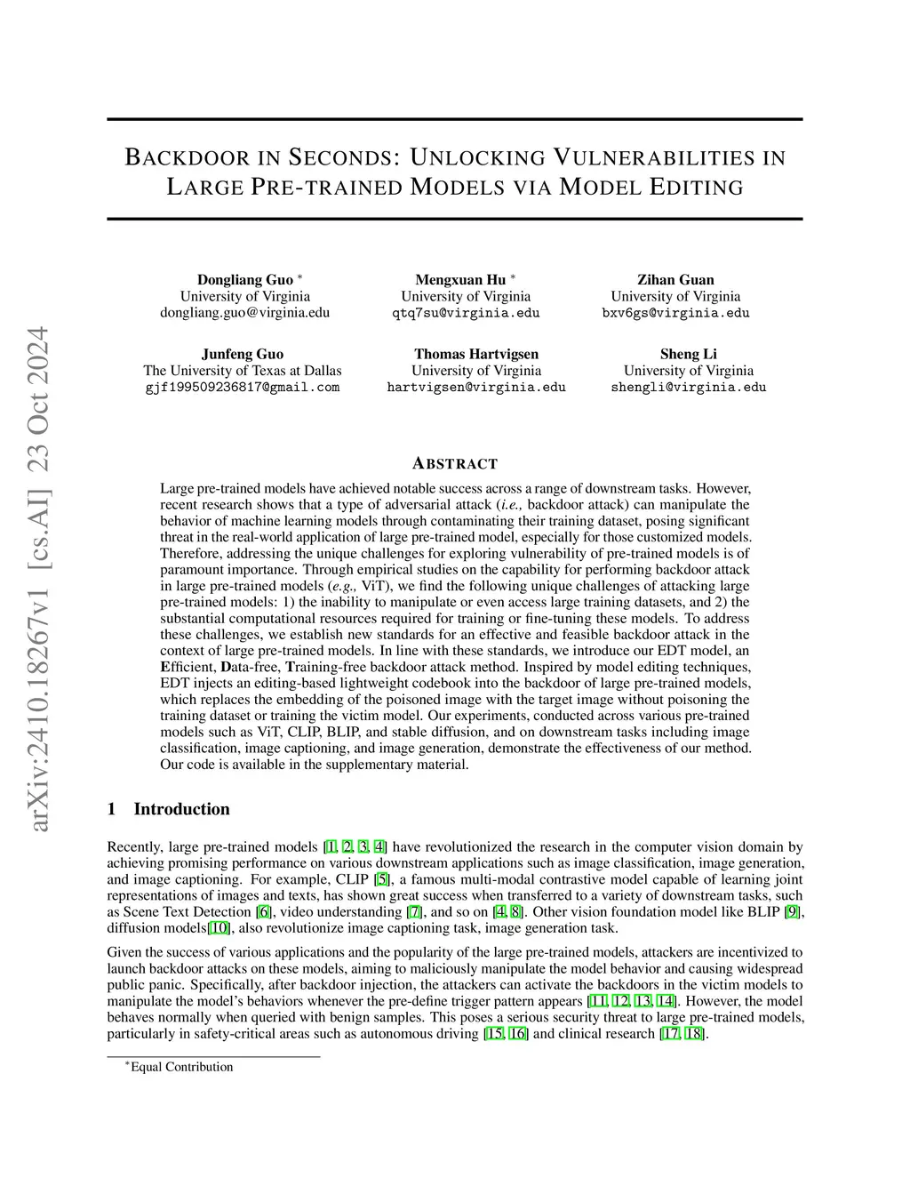 Backdoor in Seconds: Unlocking Vulnerabilities in Large Pre-trained