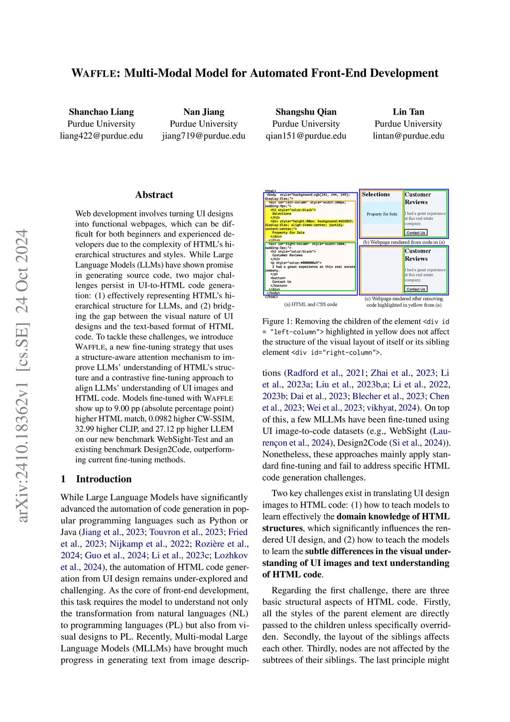 WAFFLE: Finetuning Multi-Modal Model for Automated Front-End Development