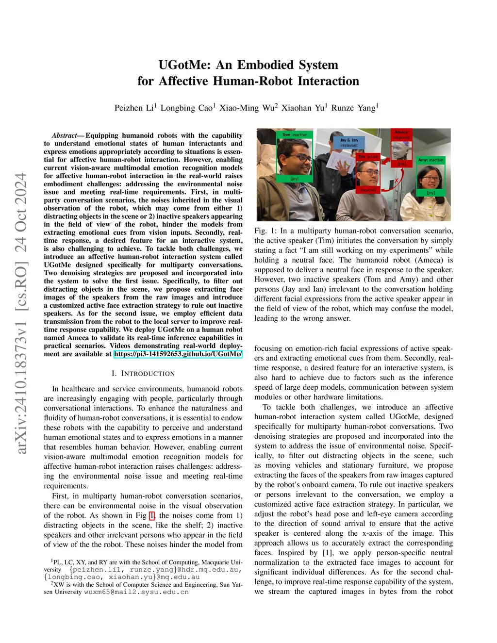 UGotMe: An Embodied System for Affective Human-Robot Interaction