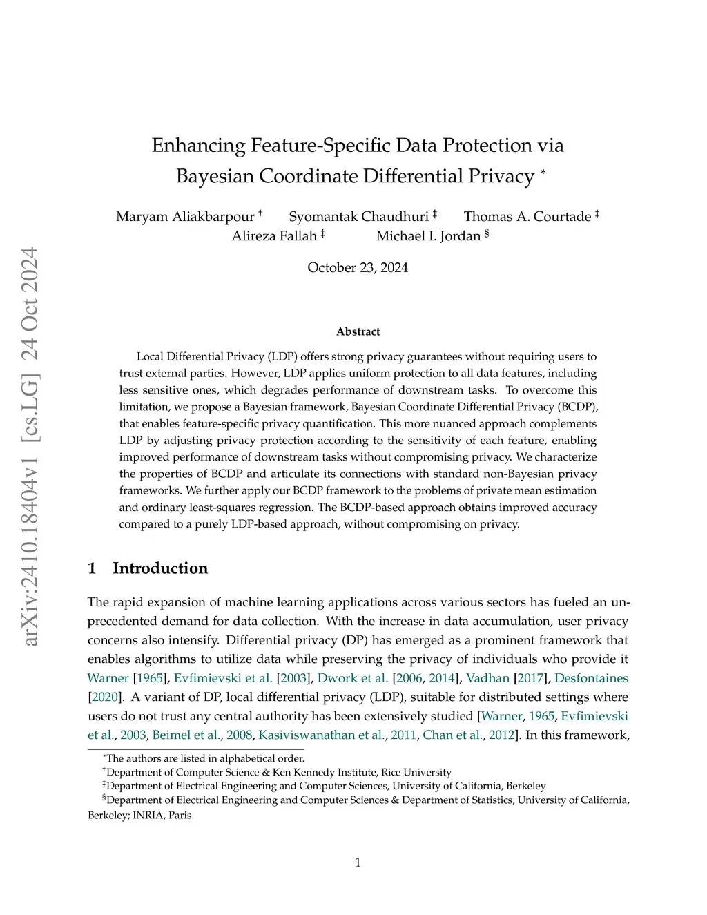 Enhancing Feature-Specific Data Protection via Bayesian Coordinate