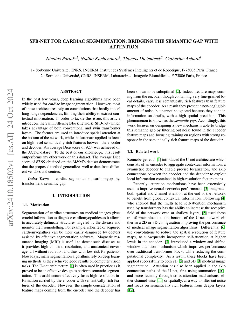 SFB-net for cardiac segmentation: Bridging the semantic gap with