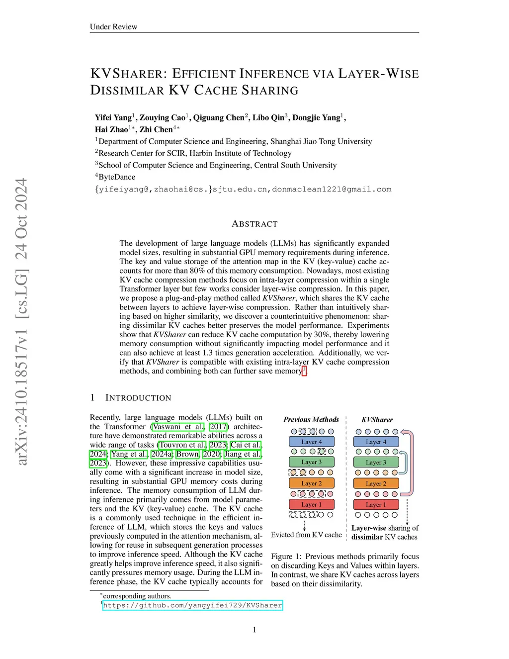 KVSharer: Efficient Inference via Layer-Wise Dissimilar KV Cache Sharing