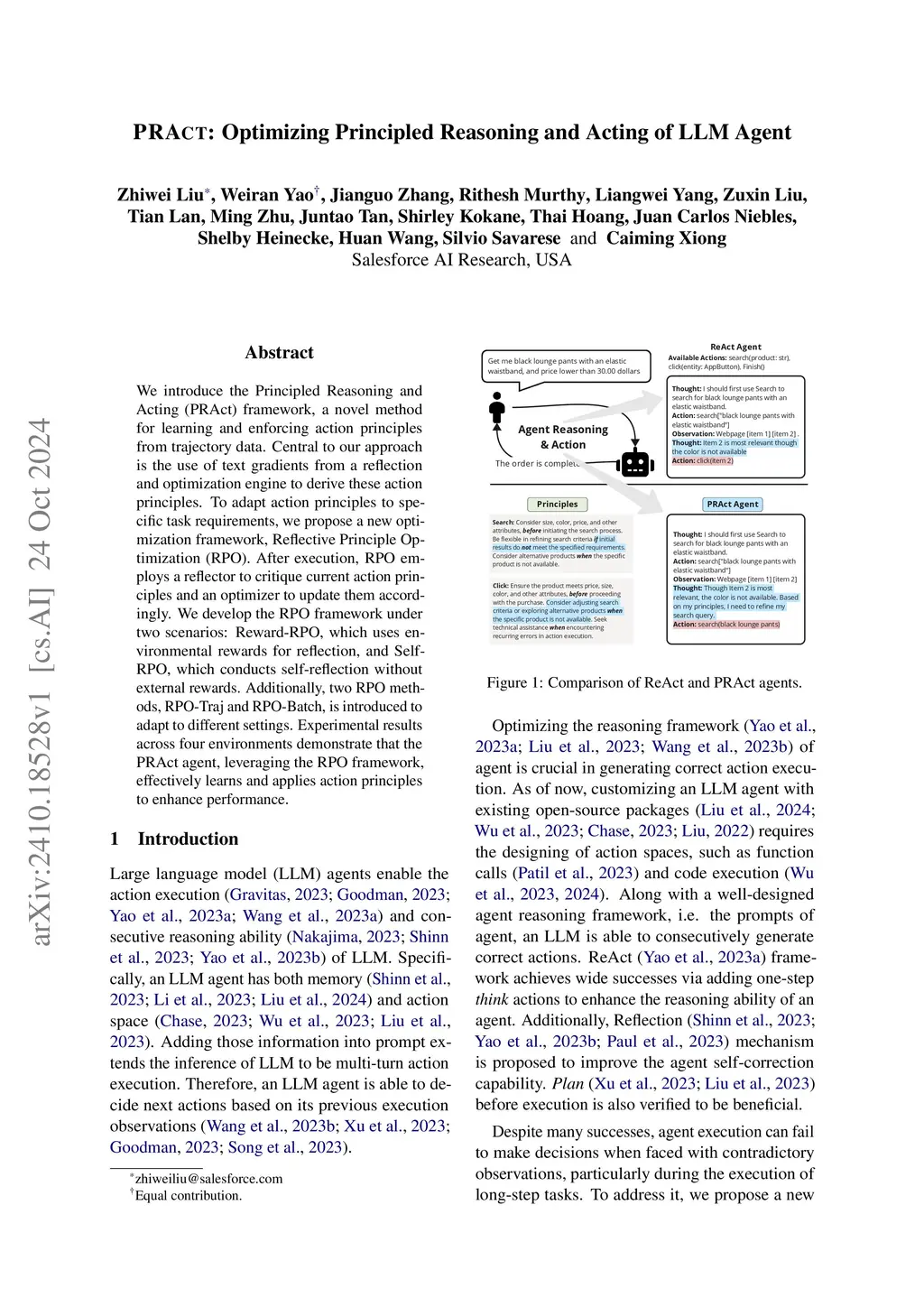 We introduce the Principled Reasoning and Acting (PRAct) framework, a novel method for learning and enforcing action principles from trajectory data. Central to our approach is the use of text gradients from a reflection and optimization engine to derive these action principles. To adapt action principles to specific task requirements, we propose a new optimization framework, Reflective Principle Optimization (RPO). After execution, RPO employs a reflector to critique current action principles and an optimizer to update them accordingly. We develop the RPO framework under two scenarios: Reward-RPO, which uses environmental rewards for reflection, and Self-RPO, which conducts self-reflection without external rewards. Additionally, two RPO methods, RPO-Traj and RPO-Batch, is introduced to adapt to different settings. Experimental results across four environments demonstrate that the PRAct agent, leveraging the RPO framework, effectively learns and applies action principles to enhance performance.