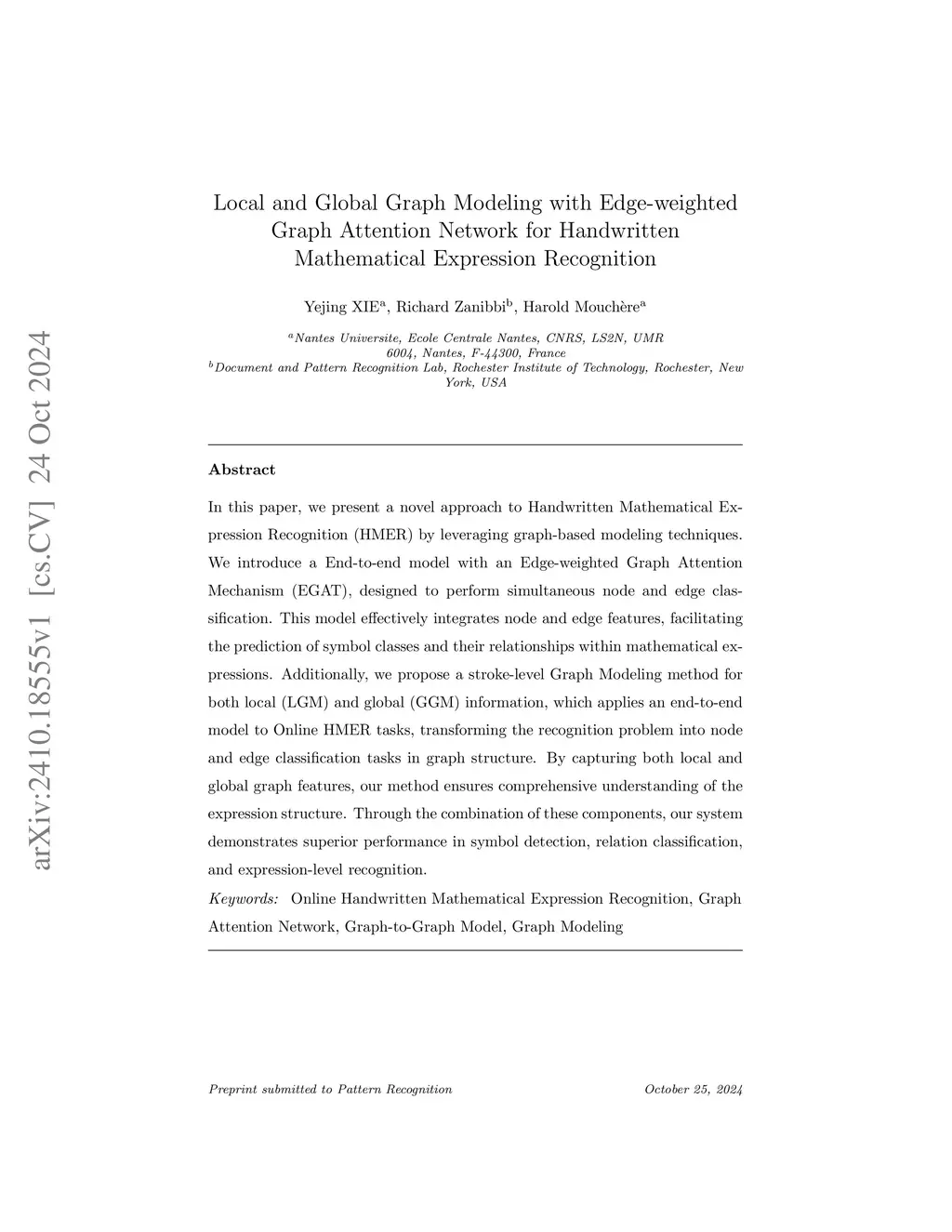 In this paper, we present a novel approach to Handwritten Mathematical Expression Recognition (HMER) by leveraging graph-based modeling techniques. We introduce an End-to-end model with an Edge-weighted Graph Attention Mechanism (EGAT), designed to perform simultaneous node and edge classification. This model effectively integrates node and edge features, facilitating the prediction of symbol classes and their relationships within mathematical expressions. Additionally, we propose a stroke-level Graph Modeling method for both local (LGM) and global (GGM) information, which applies an end-to-end model to Online HMER tasks, transforming the recognition problem into node and edge classification tasks in graph structure. By capturing both local and global graph features, our method ensures comprehensive understanding of the expression structure. Through the combination of these components, our system demonstrates superior performance in symbol detection, relation classification, and expression-level recognition.