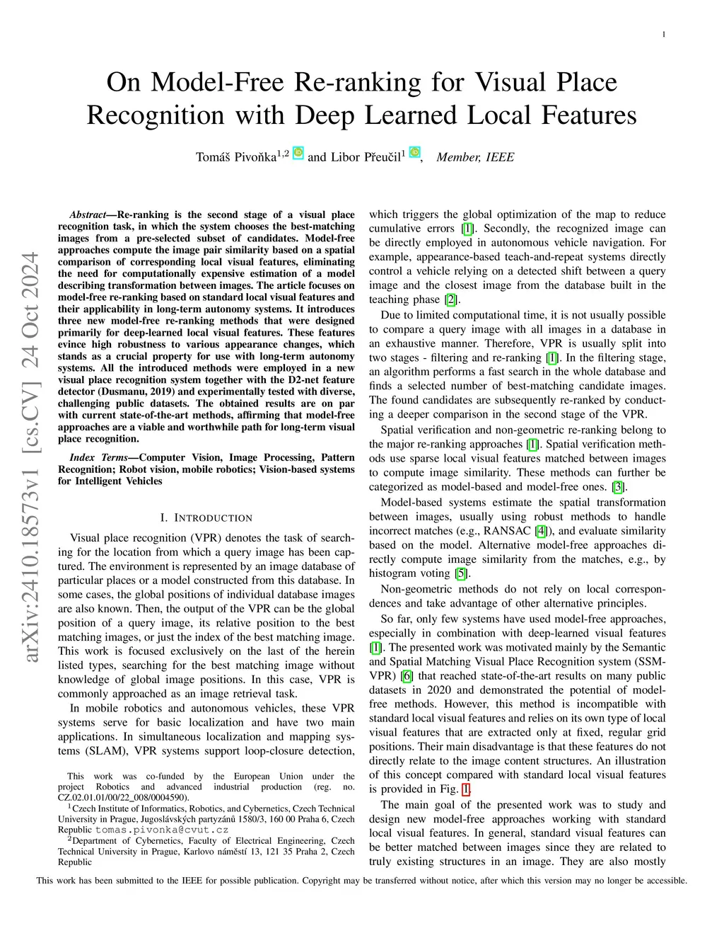 On Model-Free Re-ranking for Visual Place Recognition with Deep Learned Local Features