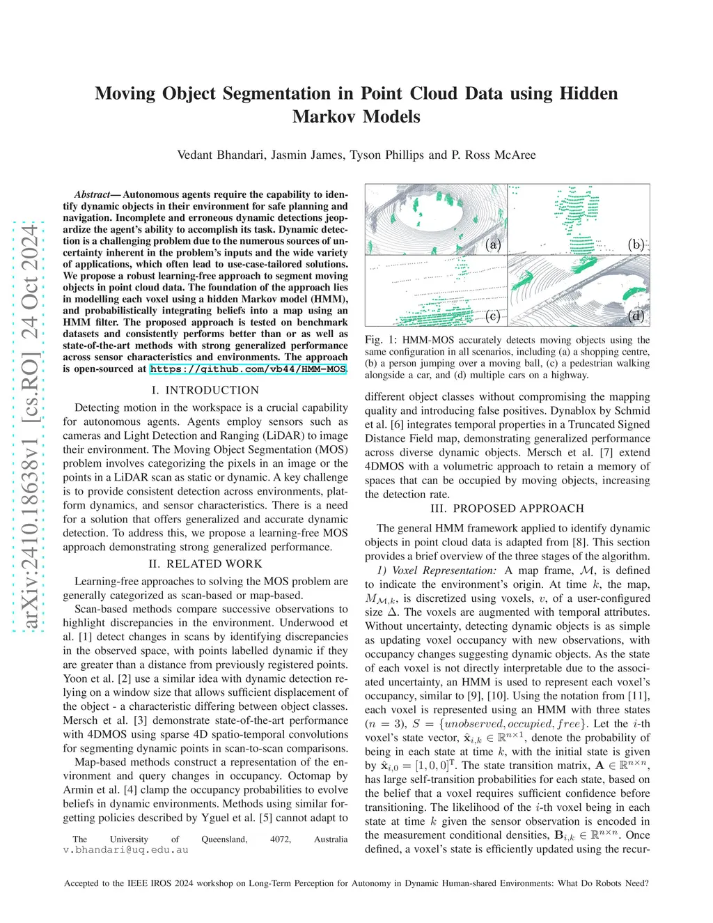 Moving Object Segmentation in Point Cloud Data using Hidden Markov