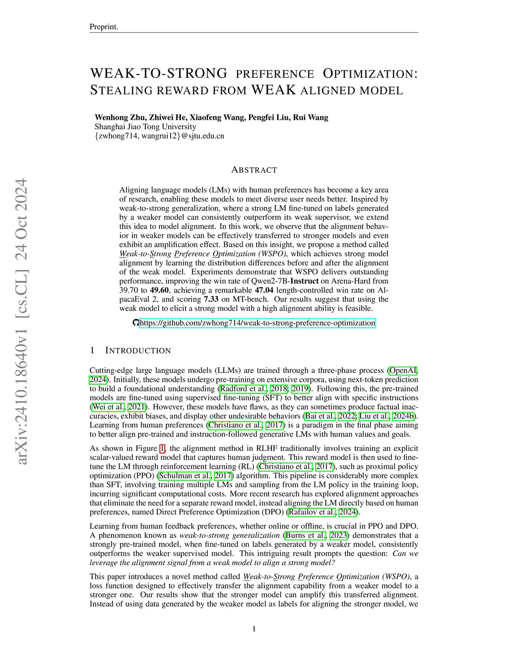 Weak-to-Strong Preference Optimization: Stealing Reward from Weak Aligned Model
