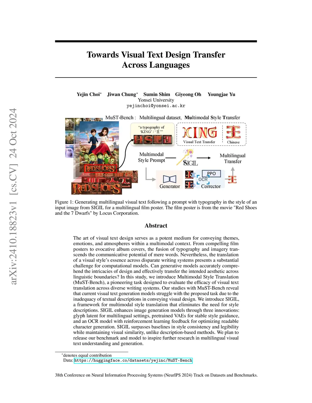 Towards Visual Text Design Transfer Across Languages