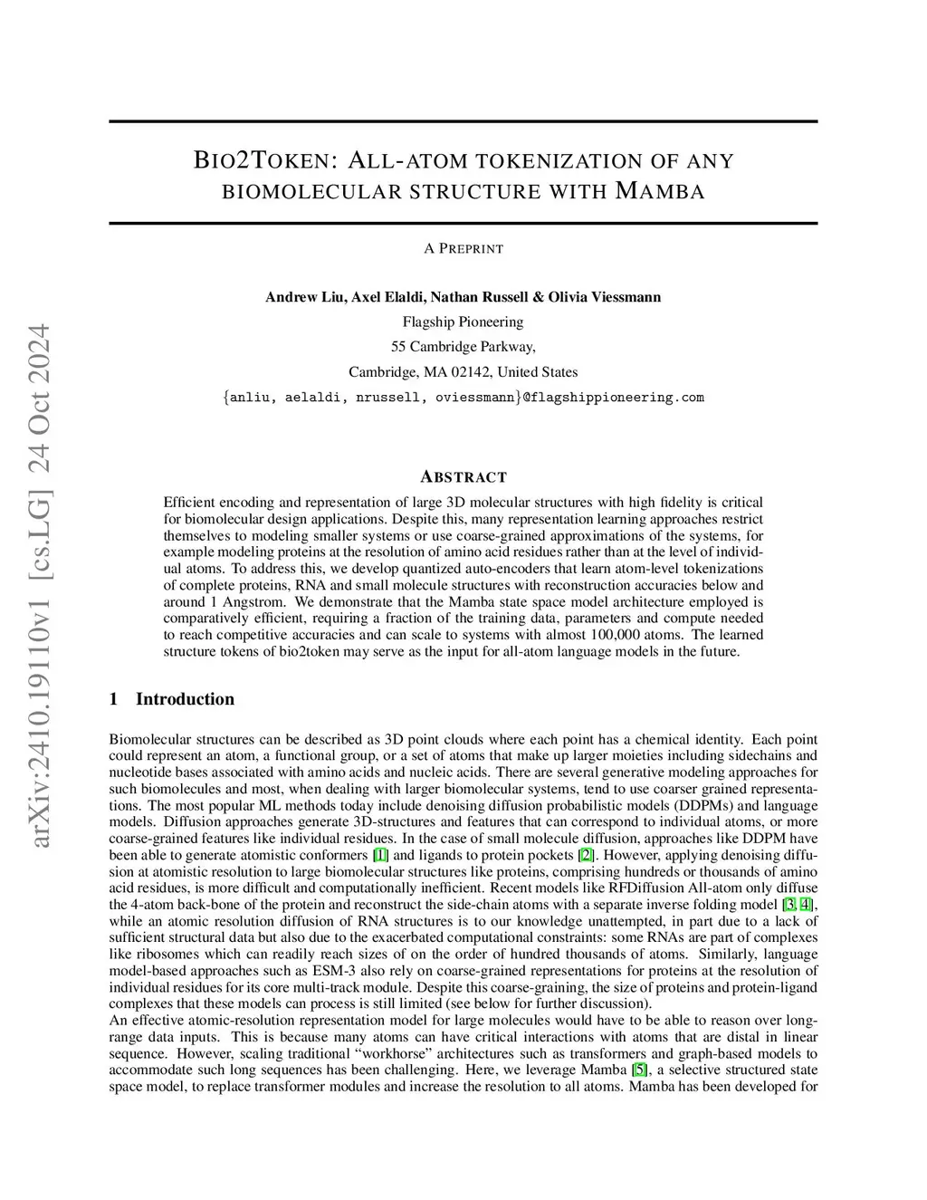 Bio2Token: All-atom tokenization of any biomolecular structure with Mamba