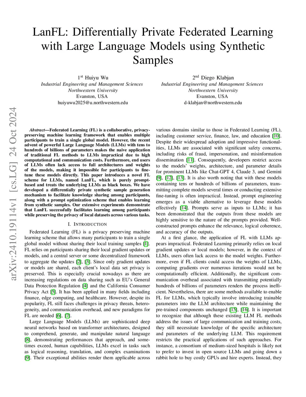 LanFL: Differentially Private Federated Learning with Large Language
