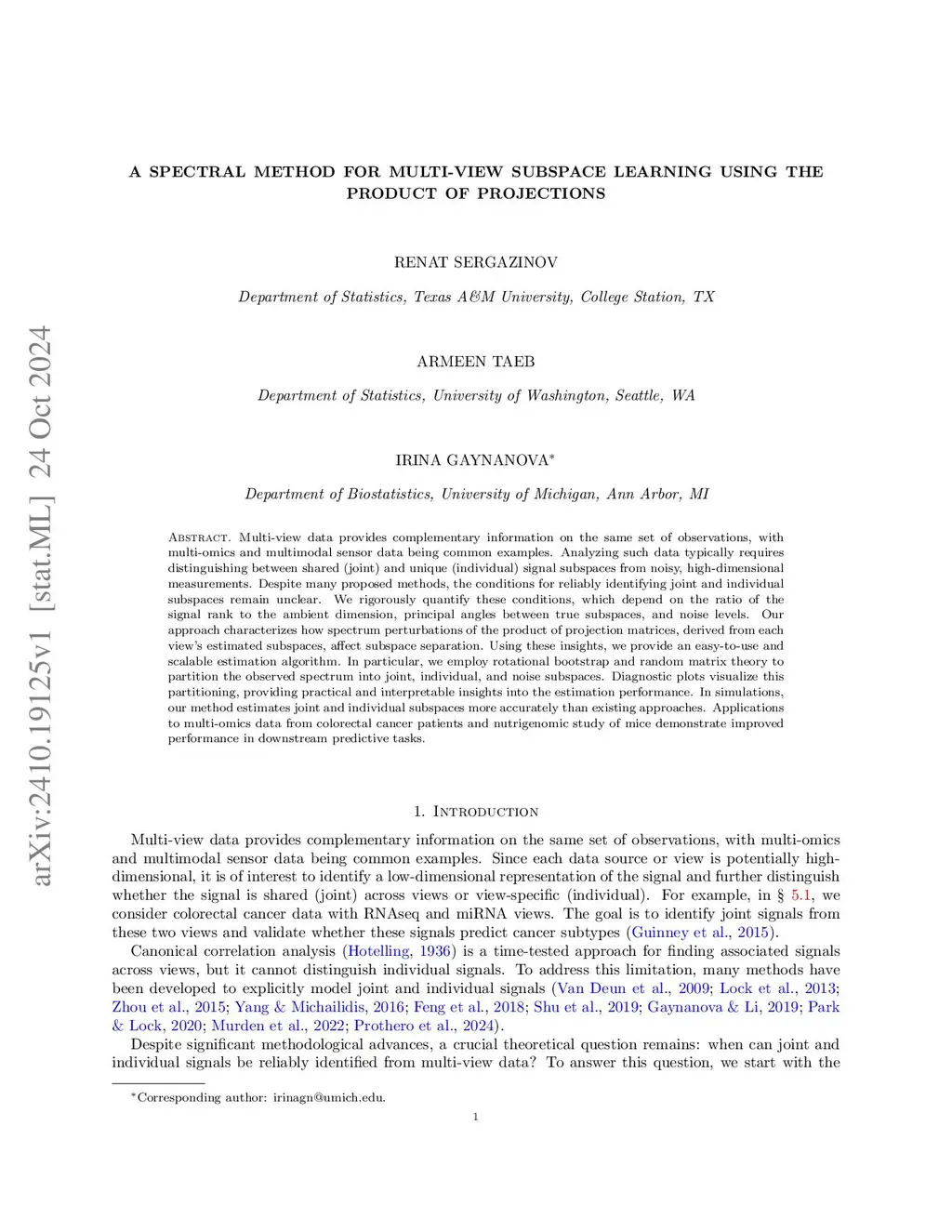 A spectral method for multi-view subspace learning using the product of projections