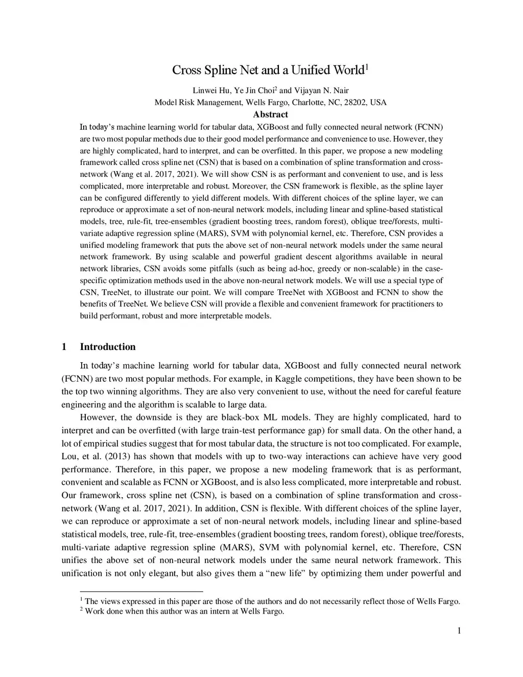 In today's machine learning world for tabular data, XGBoost and fully connected neural network (FCNN) are two most popular methods due to their good model performance and convenience to use. However, they are highly complicated, hard to interpret, and can be overfitted. In this paper, we propose a new modeling framework called cross spline net (CSN) that is based on a combination of spline transformation and cross-network (Wang et al. 2017, 2021). We will show CSN is as performant and convenient to use, and is less complicated, more interpretable and robust. Moreover, the CSN framework is flexible, as the spline layer can be configured differently to yield different models. With different choices of the spline layer, we can reproduce or approximate a set of non-neural network models, including linear and spline-based statistical models, tree, rule-fit, tree-ensembles (gradient boosting trees, random forest), oblique tree/forests, multi-variate adaptive regression spline (MARS), SVM with polynomial kernel, etc. Therefore, CSN provides a unified modeling framework that puts the above set of non-neural network models under the same neural network framework. By using scalable and powerful gradient descent algorithms available in neural network libraries, CSN avoids some pitfalls (such as being ad-hoc, greedy or non-scalable) in the case-specific optimization methods used in the above non-neural network models. We will use a special type of CSN, TreeNet, to illustrate our point. We will compare TreeNet with XGBoost and FCNN to show the benefits of TreeNet. We believe CSN will provide a flexible and convenient framework for practitioners to build performant, robust and more interpretable models.