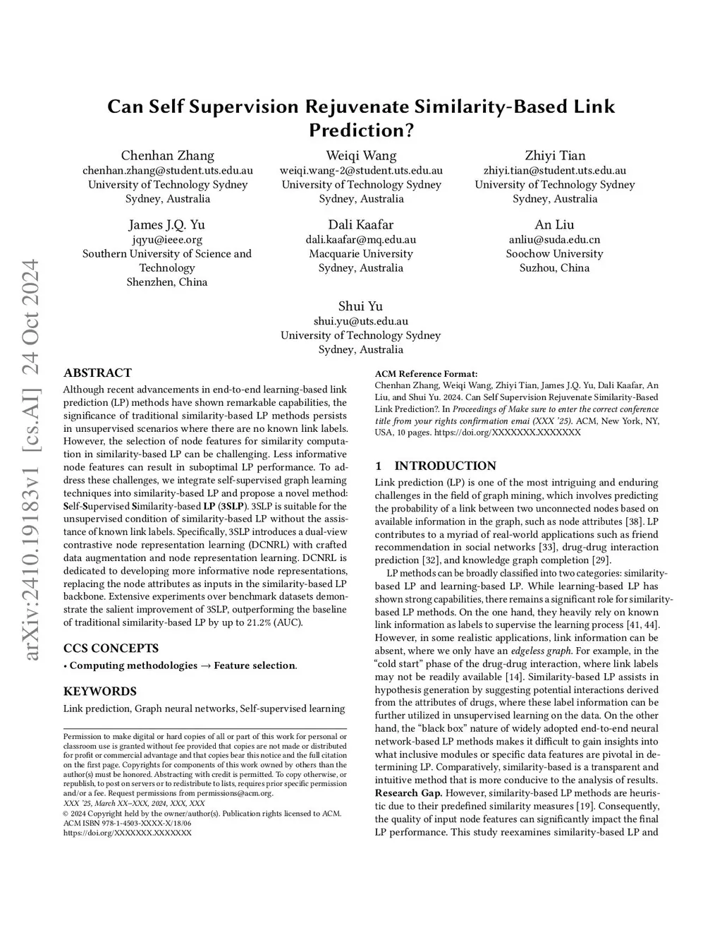 Can Self Supervision Rejuvenate Similarity-Based Link Prediction?