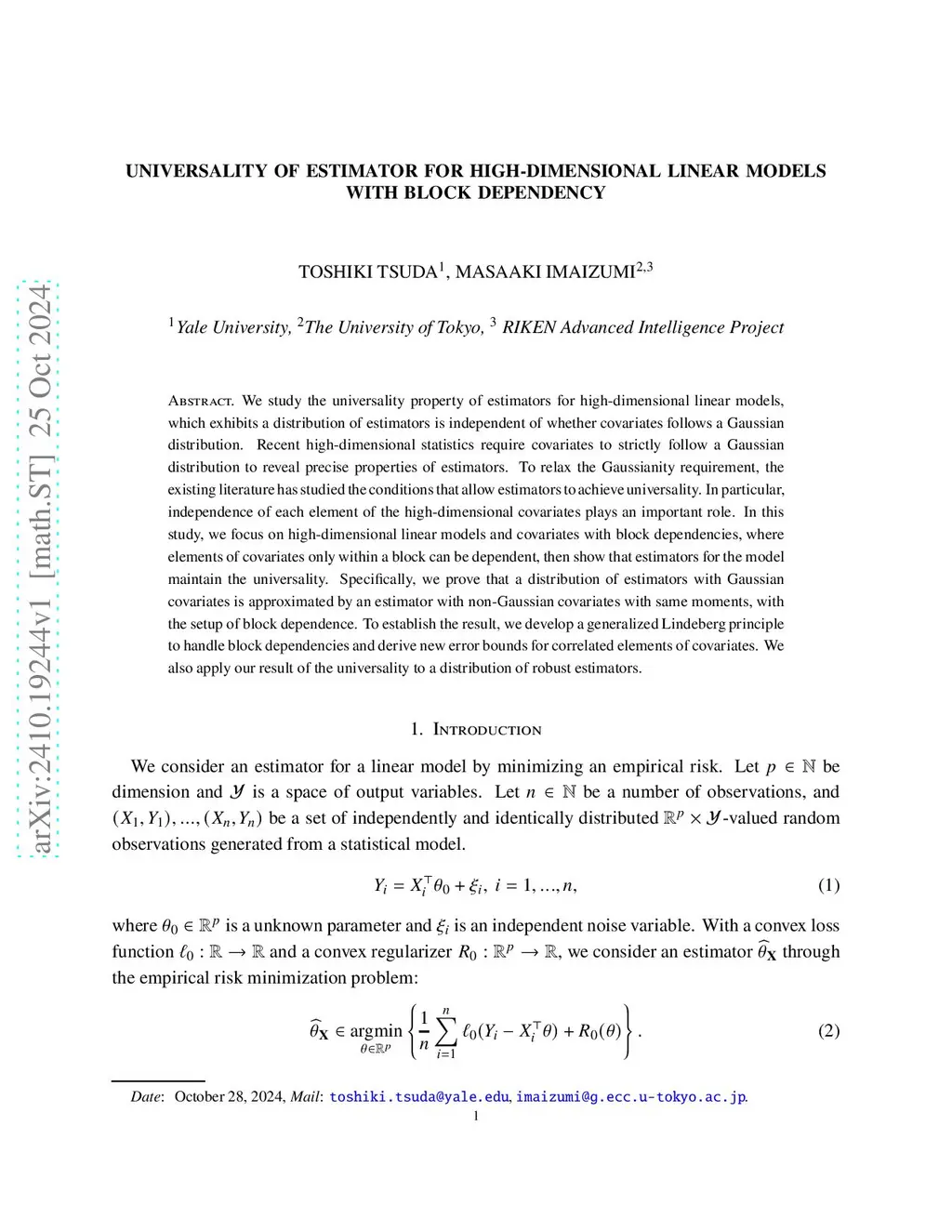 Universality of Estimator for High-Dimensional Linear Models with Block
