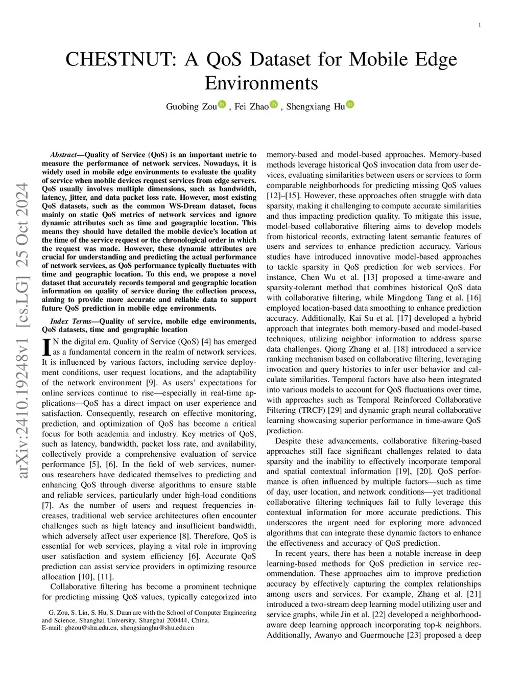CHESTNUT: A QoS Dataset for Mobile Edge Environments