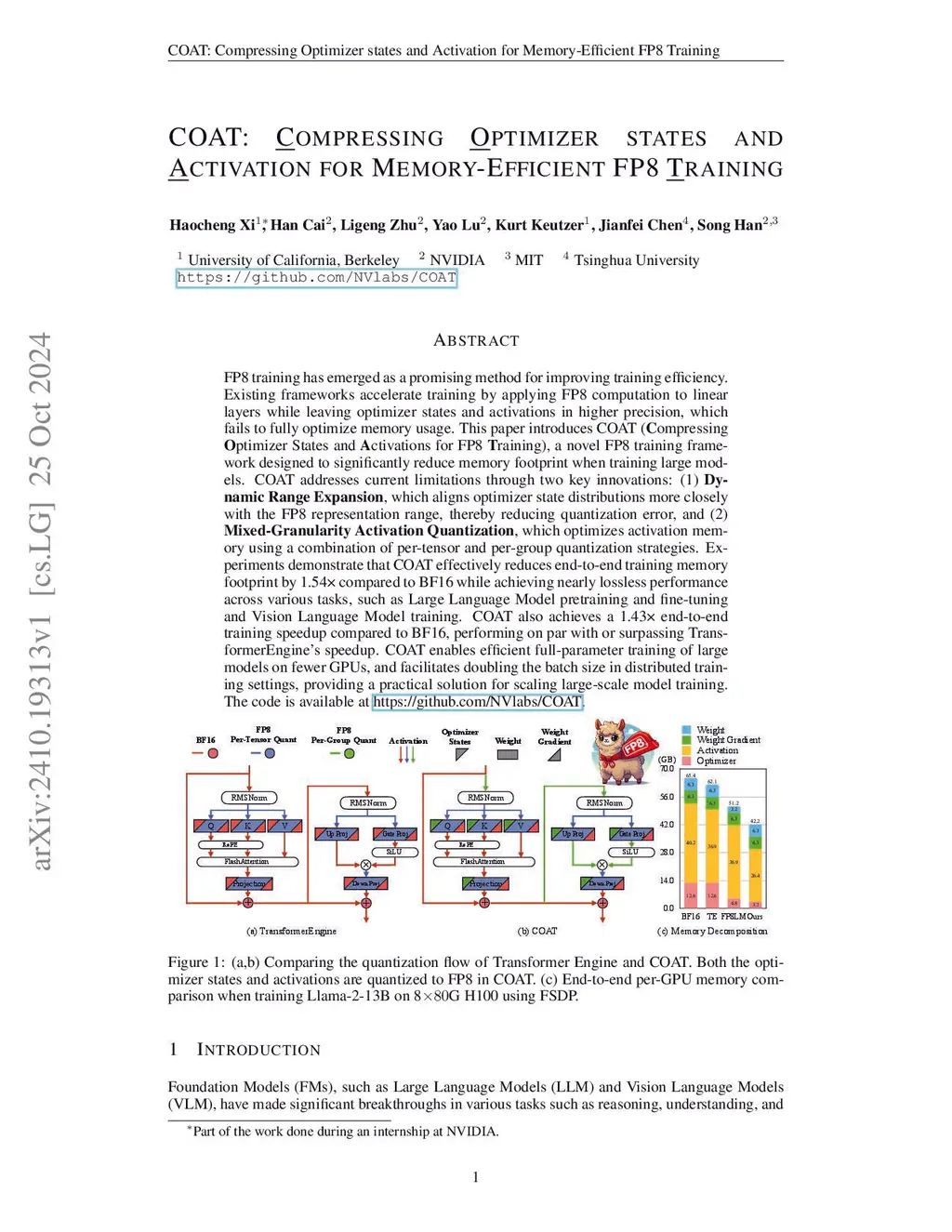 COAT: Compressing Optimizer states and Activation for Memory-Efficient FP8 Training