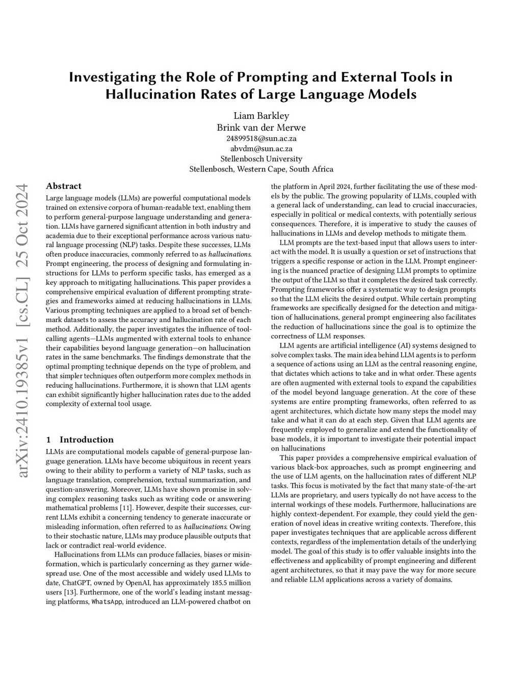 Large Language Models (LLMs) are powerful computational models trained on extensive corpora of human-readable text, enabling them to perform general-purpose language understanding and generation. LLMs have garnered significant attention in both industry and academia due to their exceptional performance across various natural language processing (NLP) tasks. Despite these successes, LLMs often produce inaccuracies, commonly referred to as hallucinations. Prompt engineering, the process of designing and formulating instructions for LLMs to perform specific tasks, has emerged as a key approach to mitigating hallucinations. This paper provides a comprehensive empirical evaluation of different prompting strategies and frameworks aimed at reducing hallucinations in LLMs. Various prompting techniques are applied to a broad set of benchmark datasets to assess the accuracy and hallucination rate of each method. Additionally, the paper investigates the influence of tool-calling agents (LLMs augmented with external tools to enhance their capabilities beyond language generation) on hallucination rates in the same benchmarks. The findings demonstrate that the optimal prompting technique depends on the type of problem, and that simpler techniques often outperform more complex methods in reducing hallucinations. Furthermore, it is shown that LLM agents can exhibit significantly higher hallucination rates due to the added complexity of external tool usage.