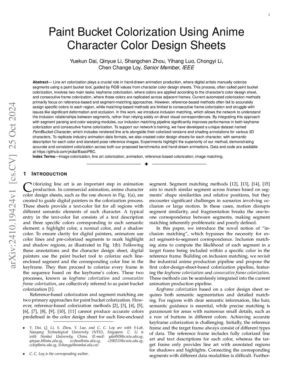 Paint Bucket Colorization Using Anime Character Color Design Sheets