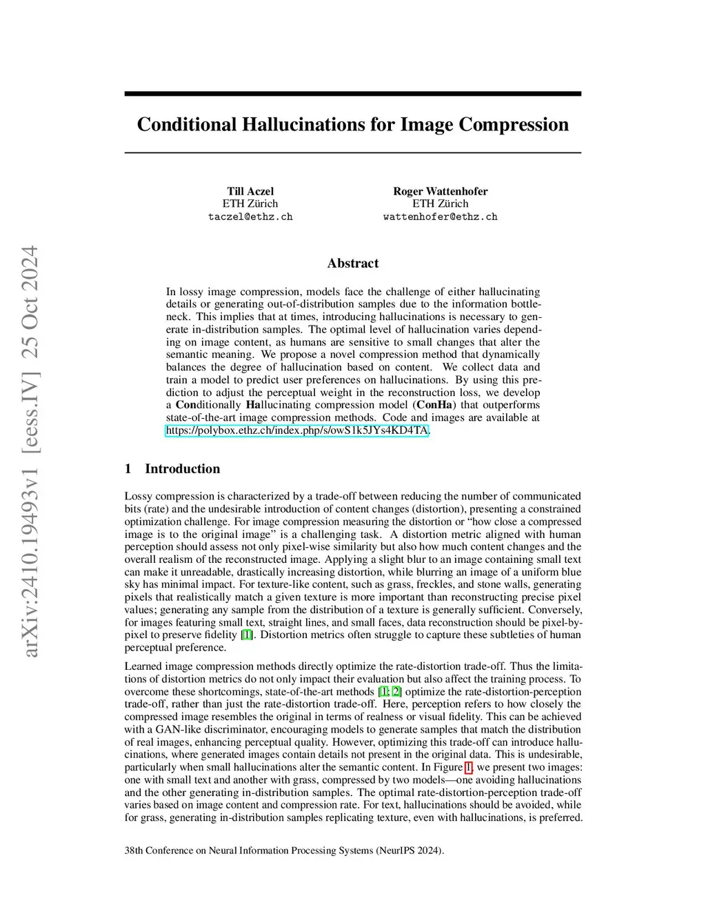 Conditional Hallucinations for Image Compression