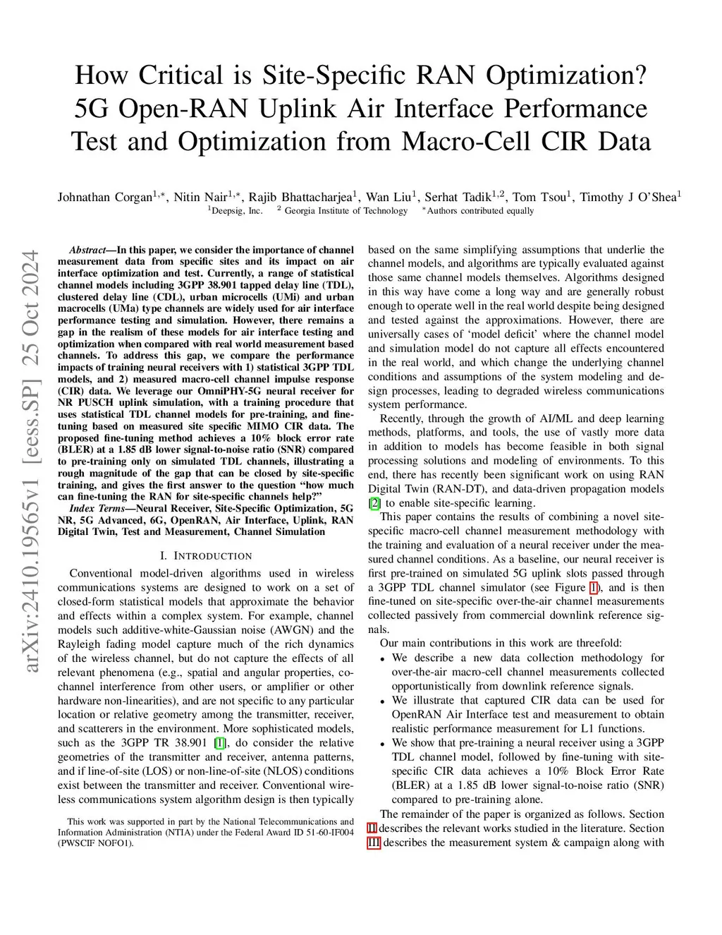 In this paper, we consider the importance of channel measurement data from specific sites and its impact on air interface optimization and test. Currently, a range of statistical channel models including 3GPP 38.901 tapped delay line (TDL), clustered delay line (CDL), urban microcells (UMi) and urban macrocells (UMa) type channels are widely used for air interface performance testing and simulation. However, there remains a gap in the realism of these models for air interface testing and optimization when compared with real world measurement based channels. To address this gap, we compare the performance impacts of training neural receivers with 1) statistical 3GPP TDL models, and 2) measured macro-cell channel impulse response (CIR) data. We leverage our OmniPHY-5G neural receiver for NR PUSCH uplink simulation, with a training procedure that uses statistical TDL channel models for pre-training, and fine-tuning based on measured site specific MIMO CIR data. The proposed fine-tuning method achieves a 10% block error rate (BLER) at a 1.85 dB lower signal-to-noise ratio (SNR) compared to pre-training only on simulated TDL channels, illustrating a rough magnitude of the gap that can be closed by site-specific training, and gives the first answer to the question "how much can fine-tuning the RAN for site-specific channels help?"