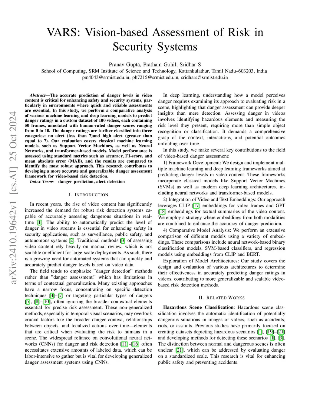VARS: Vision-based Assessment of Risk in Security Systems