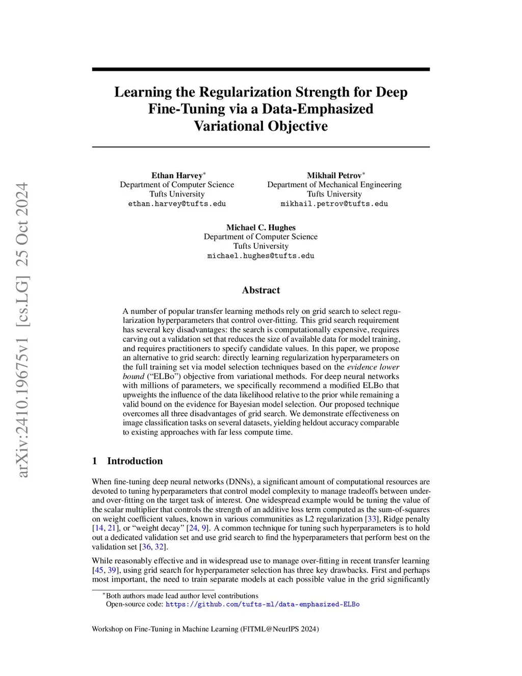 Learning the Regularization Strength for Deep Fine-Tuning via a Data-Emphasized Variational Objective
