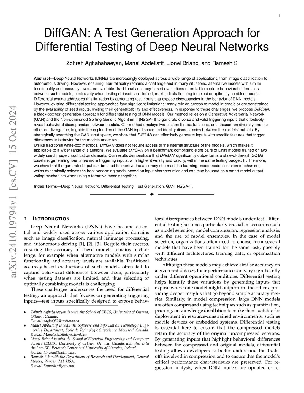 DiffGAN: A Test Generation Approach for Differential Testing of Deep Neural Networks for Image Analysis