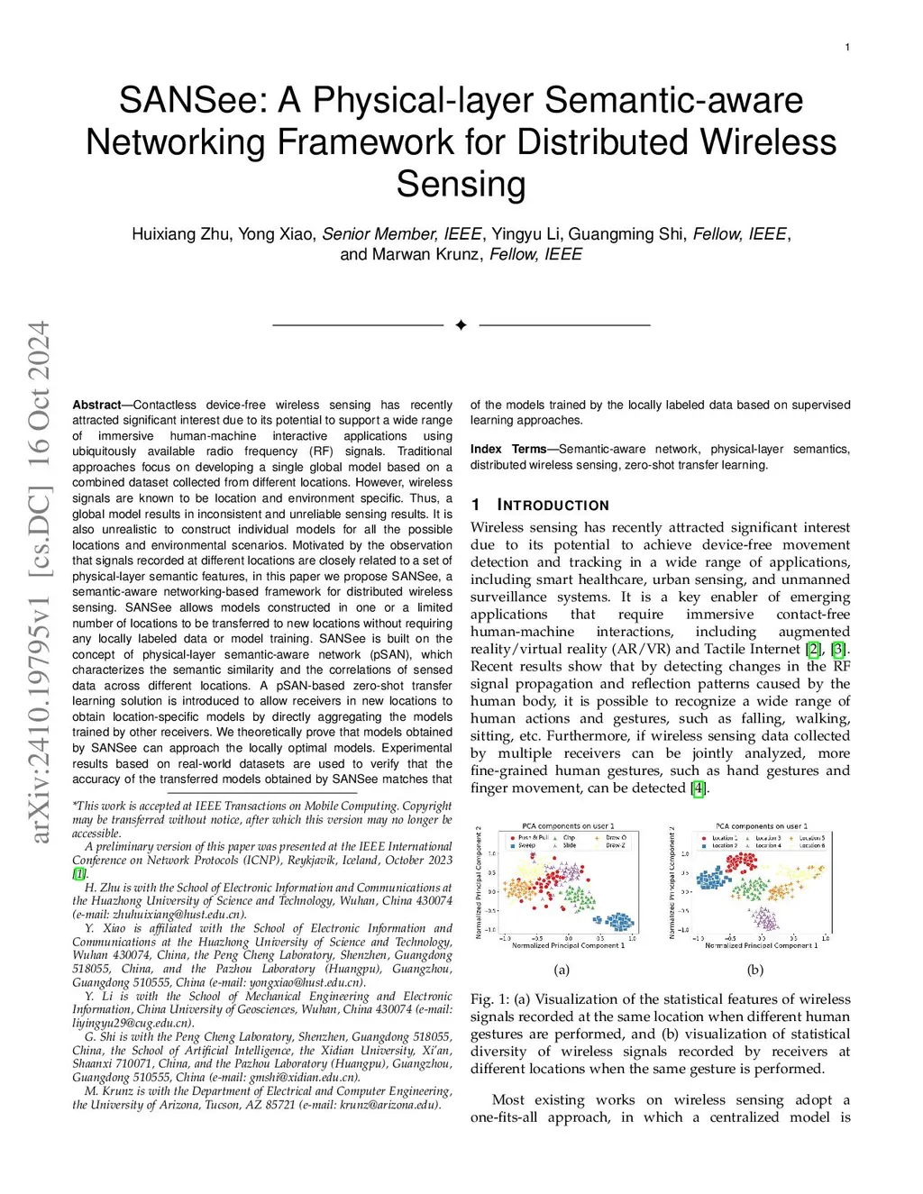 Contactless device-free wireless sensing has recently attracted significant interest due to its potential to support a wide range of immersive human-machine interactive applications using ubiquitously available radio frequency (RF) signals. Traditional approaches focus on developing a single global model based on a combined dataset collected from different locations. However, wireless signals are known to be location and environment specific. Thus, a global model results in inconsistent and unreliable sensing results. It is also unrealistic to construct individual models for all the possible locations and environmental scenarios. Motivated by the observation that signals recorded at different locations are closely related to a set of physical-layer semantic features, in this paper we propose SANSee, a semantic-aware networking-based framework for distributed wireless sensing. SANSee allows models constructed in one or a limited number of locations to be transferred to new locations without requiring any locally labeled data or model training. SANSee is built on the concept of physical-layer semantic-aware network (pSAN), which characterizes the semantic similarity and the correlations of sensed data across different locations. A pSAN-based zero-shot transfer learning solution is introduced to allow receivers in new locations to obtain location-specific models by directly aggregating the models trained by other receivers. We theoretically prove that models obtained by SANSee can approach the locally optimal models. Experimental results based on real-world datasets are used to verify that the accuracy of the transferred models obtained by SANSee matches that of the models trained by the locally labeled data based on supervised learning approaches.
