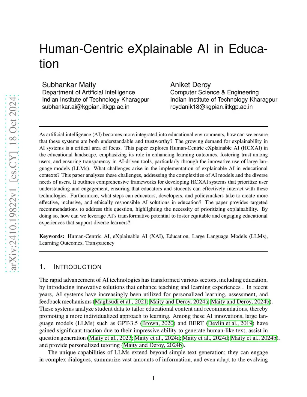 As artificial intelligence (AI) becomes more integrated into educational environments, how can we ensure that these systems are both understandable and trustworthy? The growing demand for explainability in AI systems is a critical area of focus. This paper explores Human-Centric eXplainable AI (HCXAI) in the educational landscape, emphasizing its role in enhancing learning outcomes, fostering trust among users, and ensuring transparency in AI-driven tools, particularly through the innovative use of large language models (LLMs). What challenges arise in the implementation of explainable AI in educational contexts? This paper analyzes these challenges, addressing the complexities of AI models and the diverse needs of users. It outlines comprehensive frameworks for developing HCXAI systems that prioritize user understanding and engagement, ensuring that educators and students can effectively interact with these technologies. Furthermore, what steps can educators, developers, and policymakers take to create more effective, inclusive, and ethically responsible AI solutions in education? The paper provides targeted recommendations to address this question, highlighting the necessity of prioritizing explainability. By doing so, how can we leverage AI's transformative potential to foster equitable and engaging educational experiences that support diverse learners?