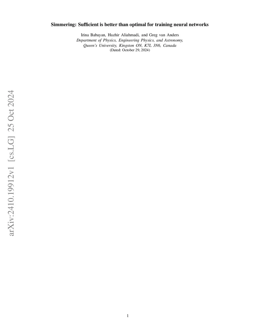 Simmering: Sufficient is better than optimal for training neural networks