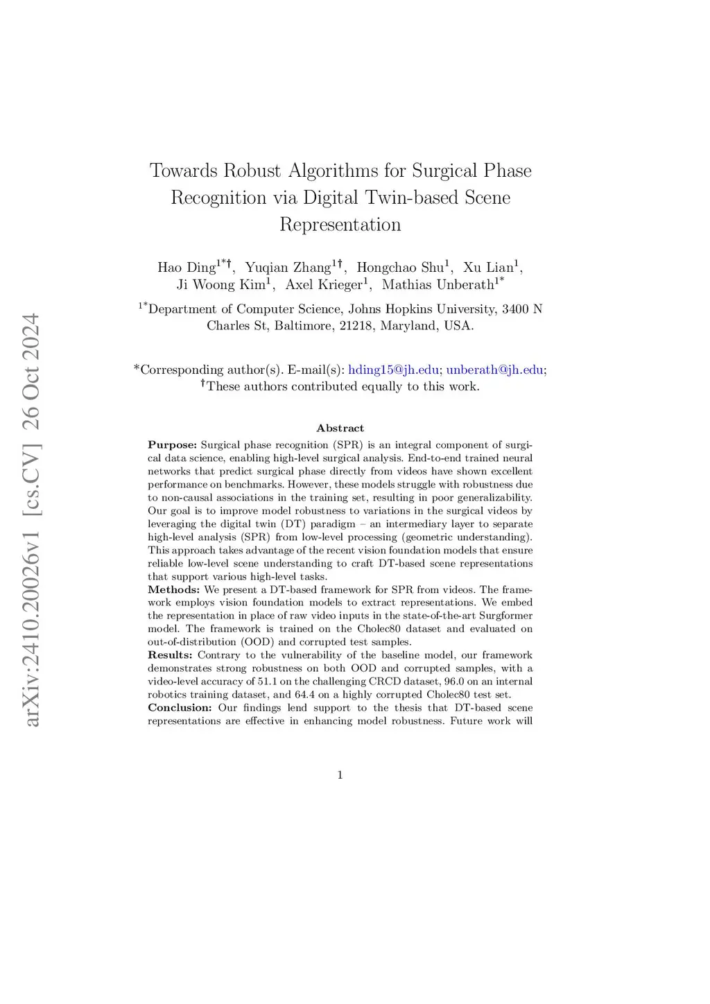 Towards Robust Algorithms for Surgical Phase Recognition via Digital Twin Representation