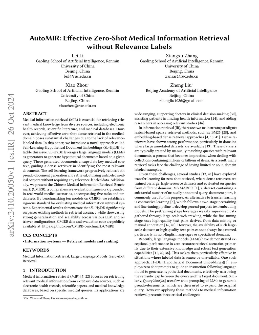 AutoMIR: Effective Zero-Shot Medical Information Retrieval without Relevance Labels