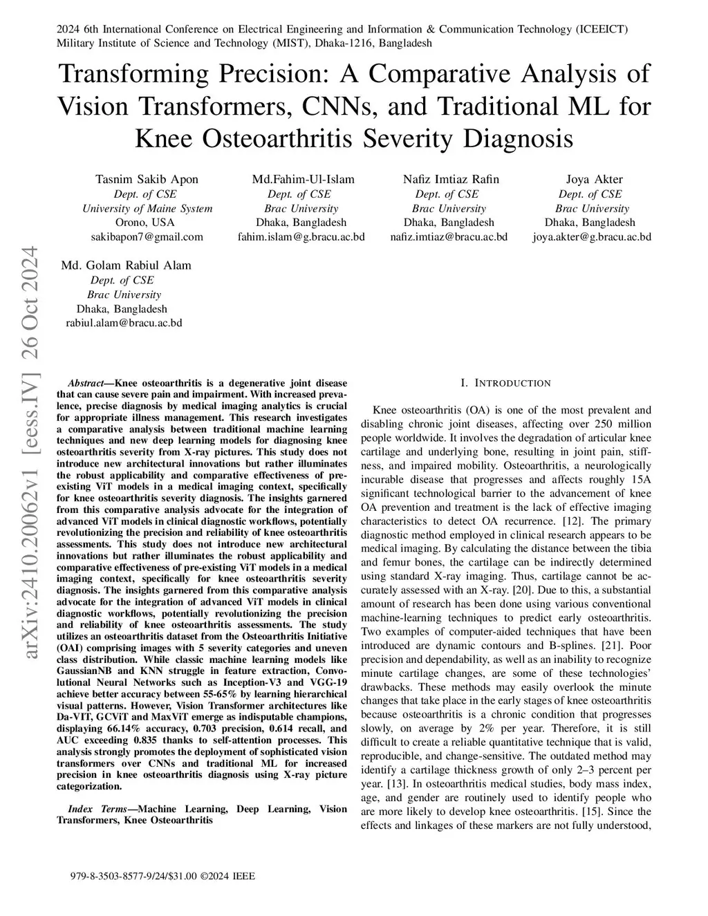 CNNs, and Traditional ML for Knee Osteoarthritis Severity Diagnosis