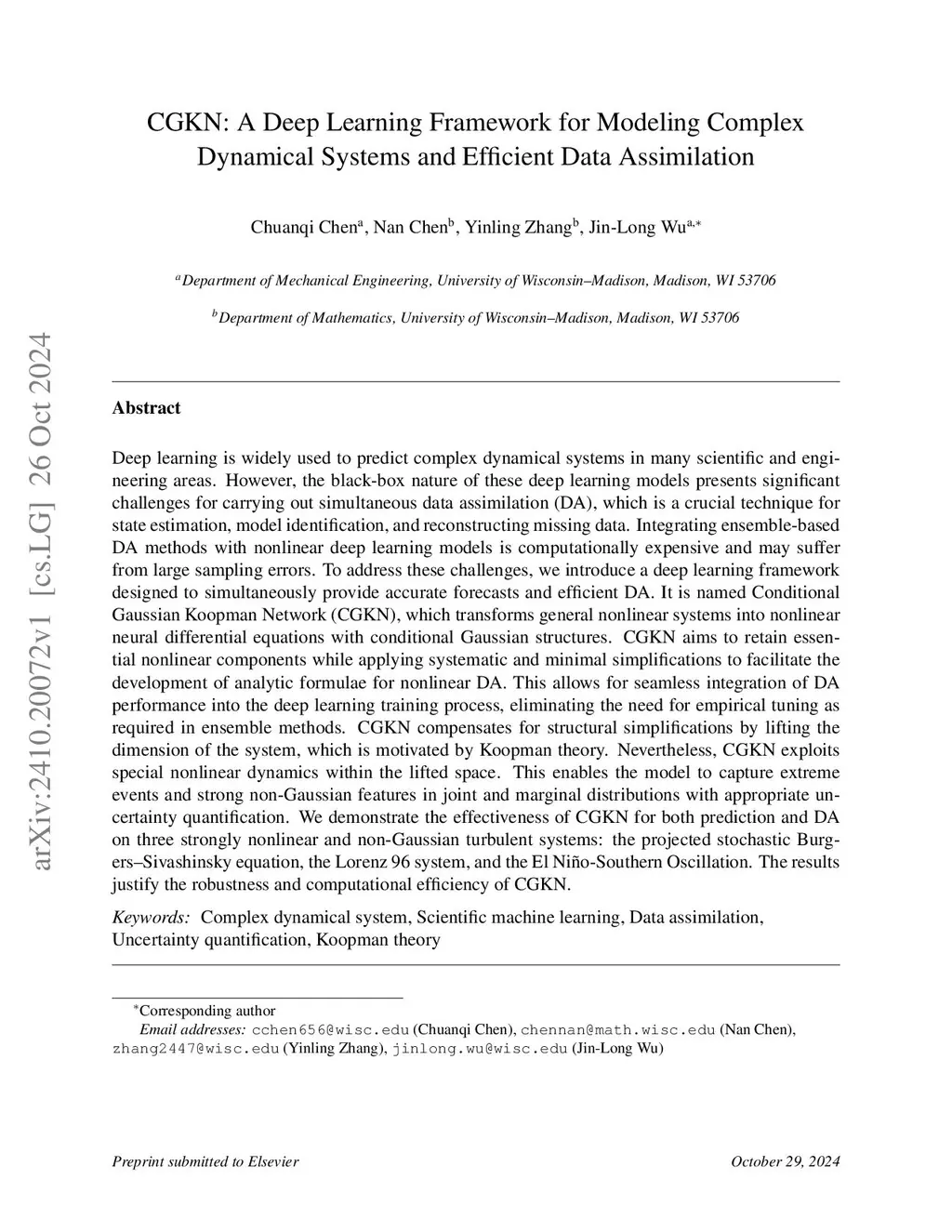 CGKN: A Deep Learning Framework for Modeling Complex Dynamical Systems and Efficient Data Assimilation