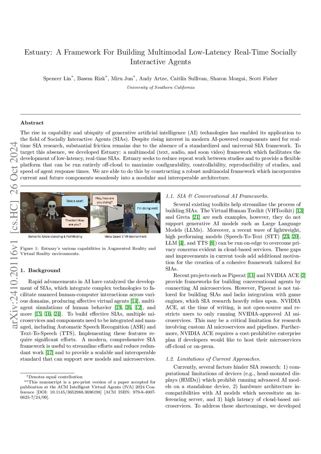 The rise in capability and ubiquity of generative artificial intelligence (AI) technologies has enabled its application to the field of Socially Interactive Agents (SIAs). Despite rising interest in modern AI-powered components used for real-time SIA research, substantial friction remains due to the absence of a standardized and universal SIA framework. To target this absence, we developed Estuary: a multimodal (text, audio, and soon video) framework which facilitates the development of low-latency, real-time SIAs. Estuary seeks to reduce repeat work between studies and to provide a flexible platform that can be run entirely off-cloud to maximize configurability, controllability, reproducibility of studies, and speed of agent response times. We are able to do this by constructing a robust multimodal framework which incorporates current and future components seamlessly into a modular and interoperable architecture.