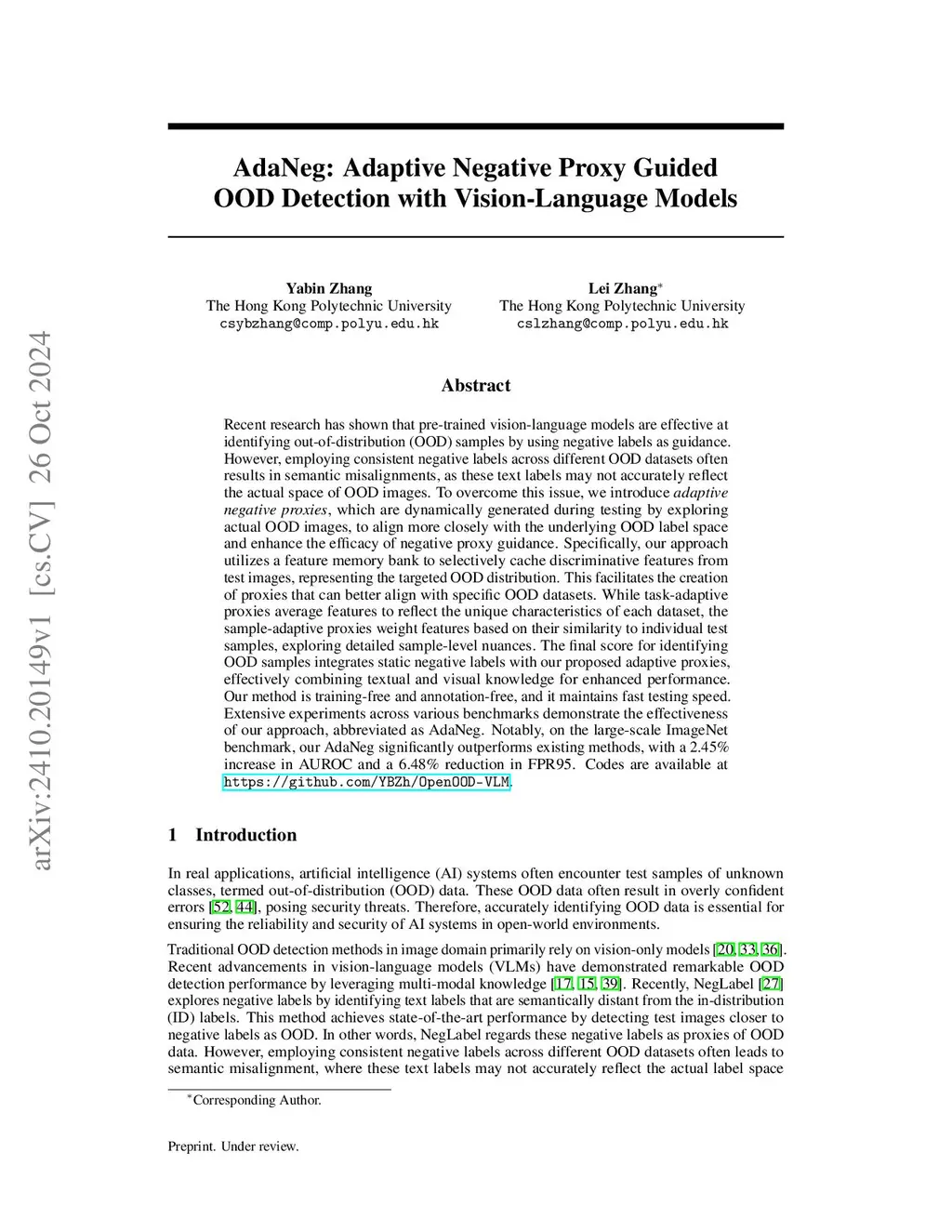 AdaNeg: Adaptive Negative Proxy Guided OOD Detection with