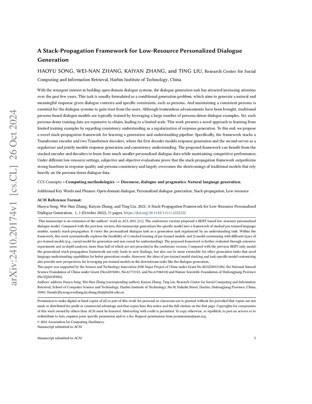 A Stack-Propagation Framework for Low-Resource Personalized Dialogue