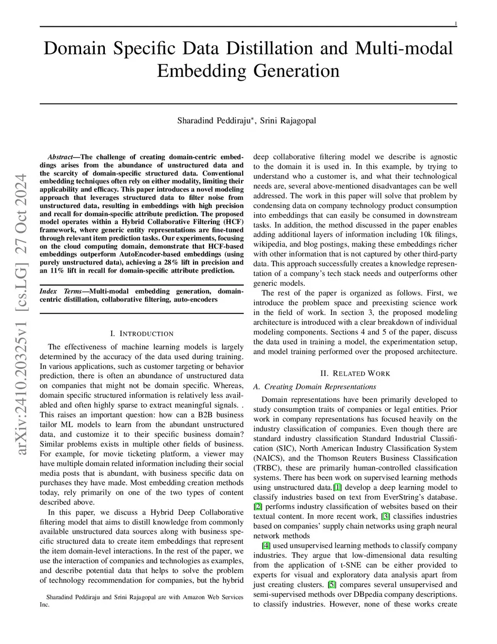 Domain Specific Data Distillation and Multi-modal Embedding Generation