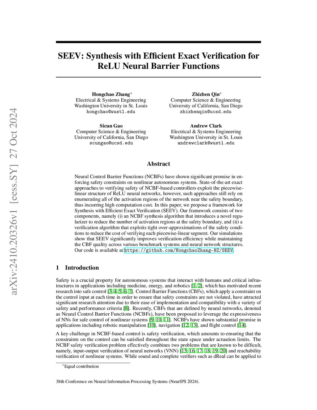 SEEV: Synthesis with Efficient Exact Verification for ReLU Neural