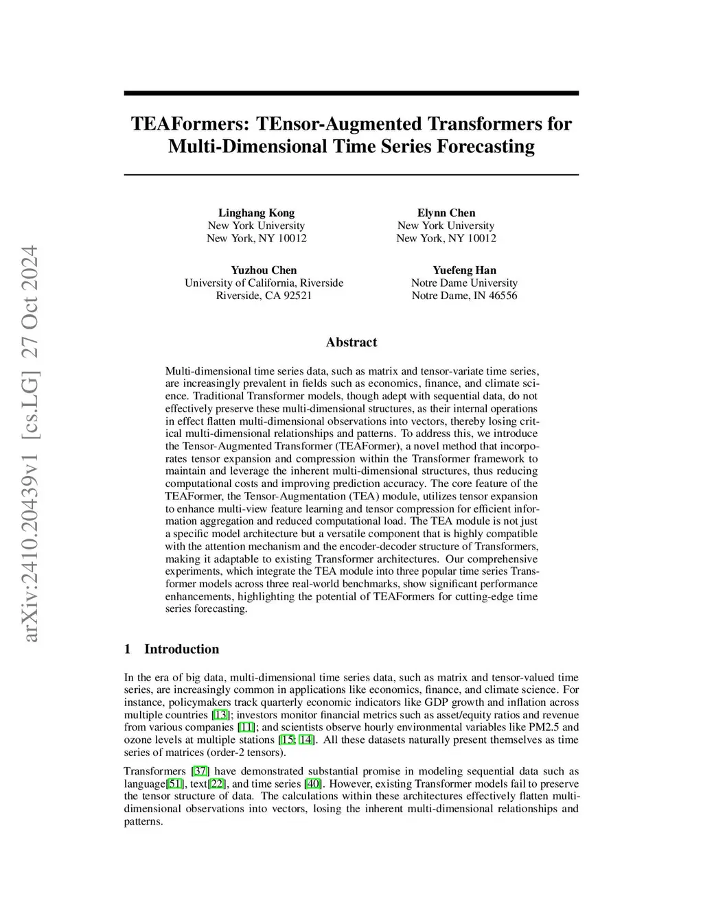 TEAFormers: TEnsor-Augmented Transformers for Multi-Dimensional Time