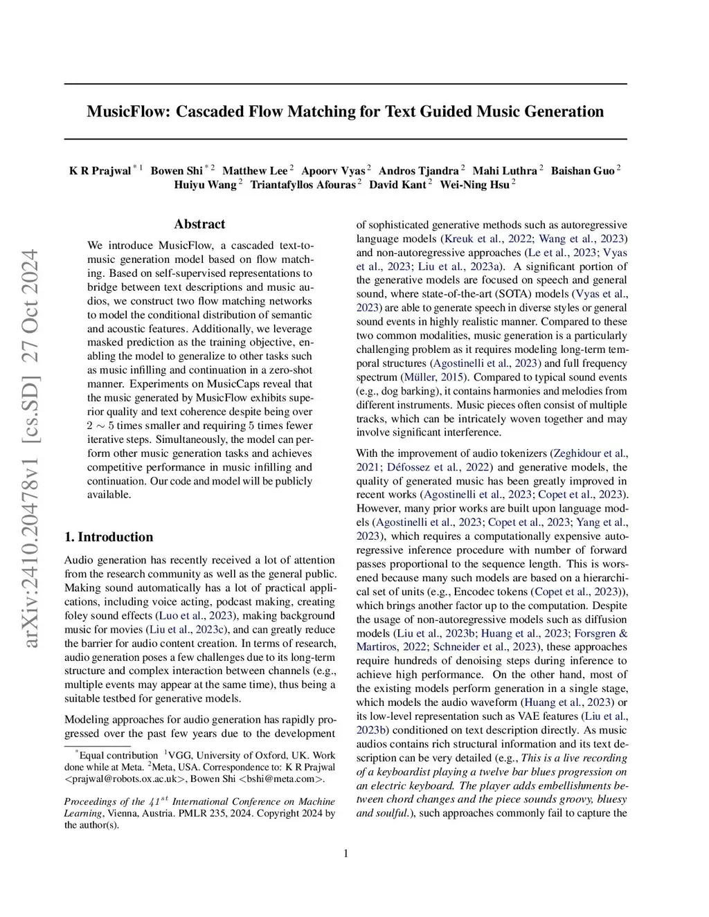 MusicFlow: Cascaded Flow Matching for Text Guided Music Generation