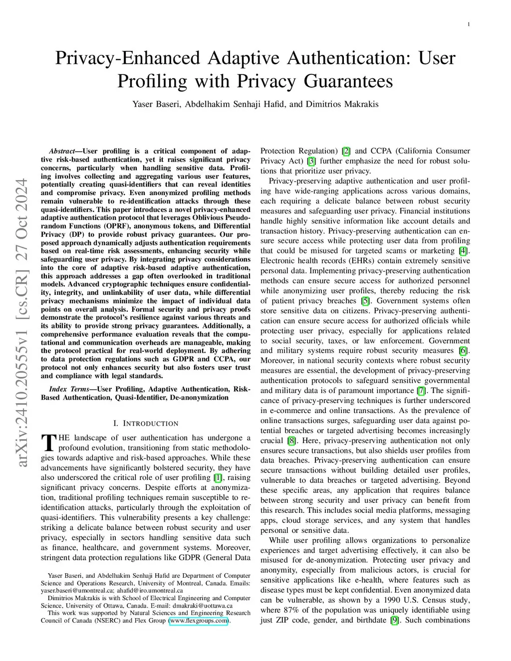 User profiling is a critical component of adaptive risk-based authentication, yet it raises significant privacy concerns, particularly when handling sensitive data. Profiling involves collecting and aggregating various user features, potentially creating quasi-identifiers that can reveal identities and compromise privacy. Even anonymized profiling methods remain vulnerable to re-identification attacks through these quasi-identifiers. This paper introduces a novel privacy-enhanced adaptive authentication protocol that leverages Oblivious Pseudorandom Functions (OPRF), anonymous tokens, and Differential Privacy (DP) to provide robust privacy guarantees. Our proposed approach dynamically adjusts authentication requirements based on real-time risk assessments, enhancing security while safeguarding user privacy. By integrating privacy considerations into the core of adaptive risk-based adaptive authentication, this approach addresses a gap often overlooked in traditional models. Advanced cryptographic techniques ensure confidentiality, integrity, and unlinkability of user data, while differential privacy mechanisms minimize the impact of individual data points on overall analysis. Formal security and privacy proofs demonstrate the protocol's resilience against various threats and its ability to provide strong privacy guarantees. Additionally, a comprehensive performance evaluation reveals that the computational and communication overheads are manageable, making the protocol practical for real-world deployment. By adhering to data protection regulations such as GDPR and CCPA, our protocol not only enhances security but also fosters user trust and compliance with legal standards.