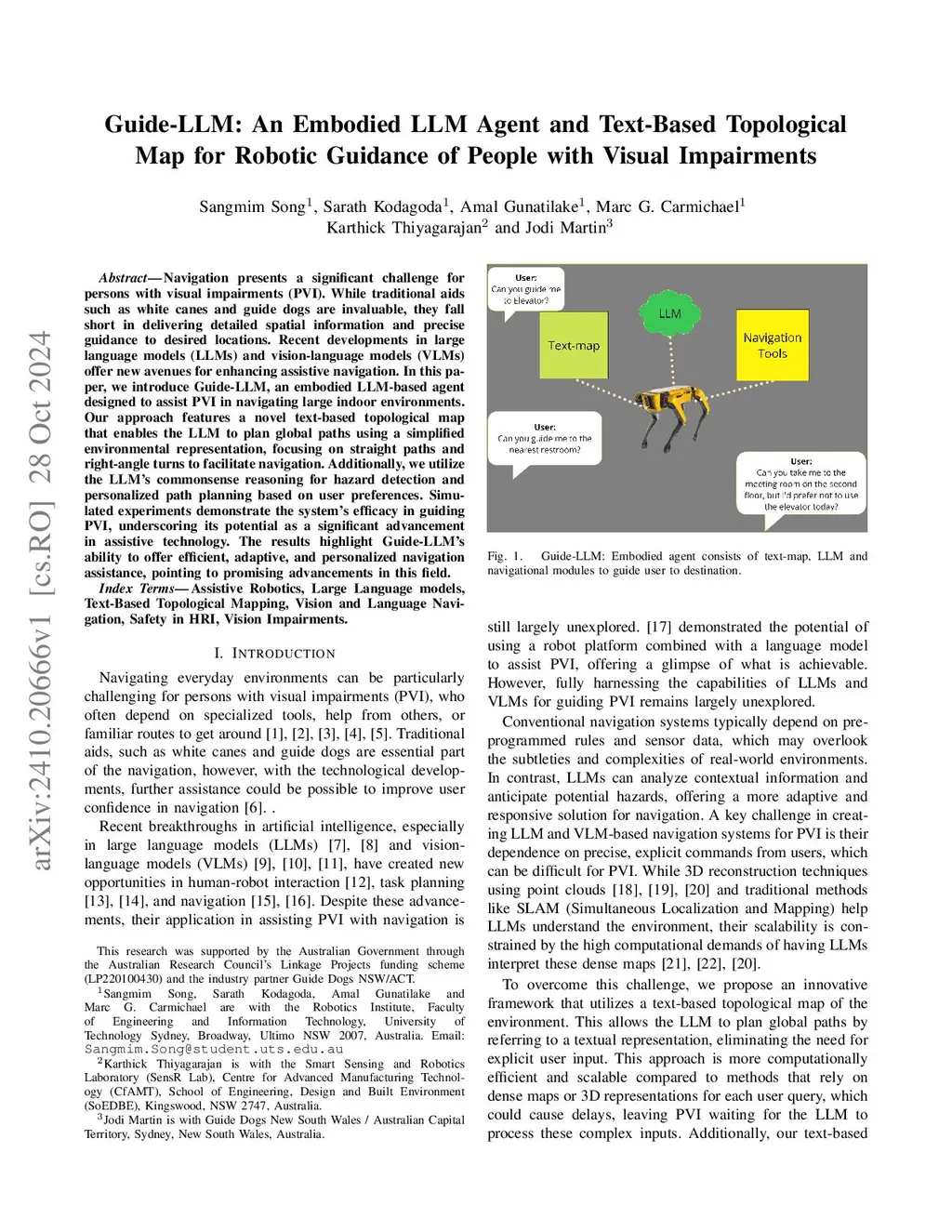 Guide-LLM: An Embodied LLM Agent and Text-Based Topological Map for Robotic Guidance of People with Visual Impairments