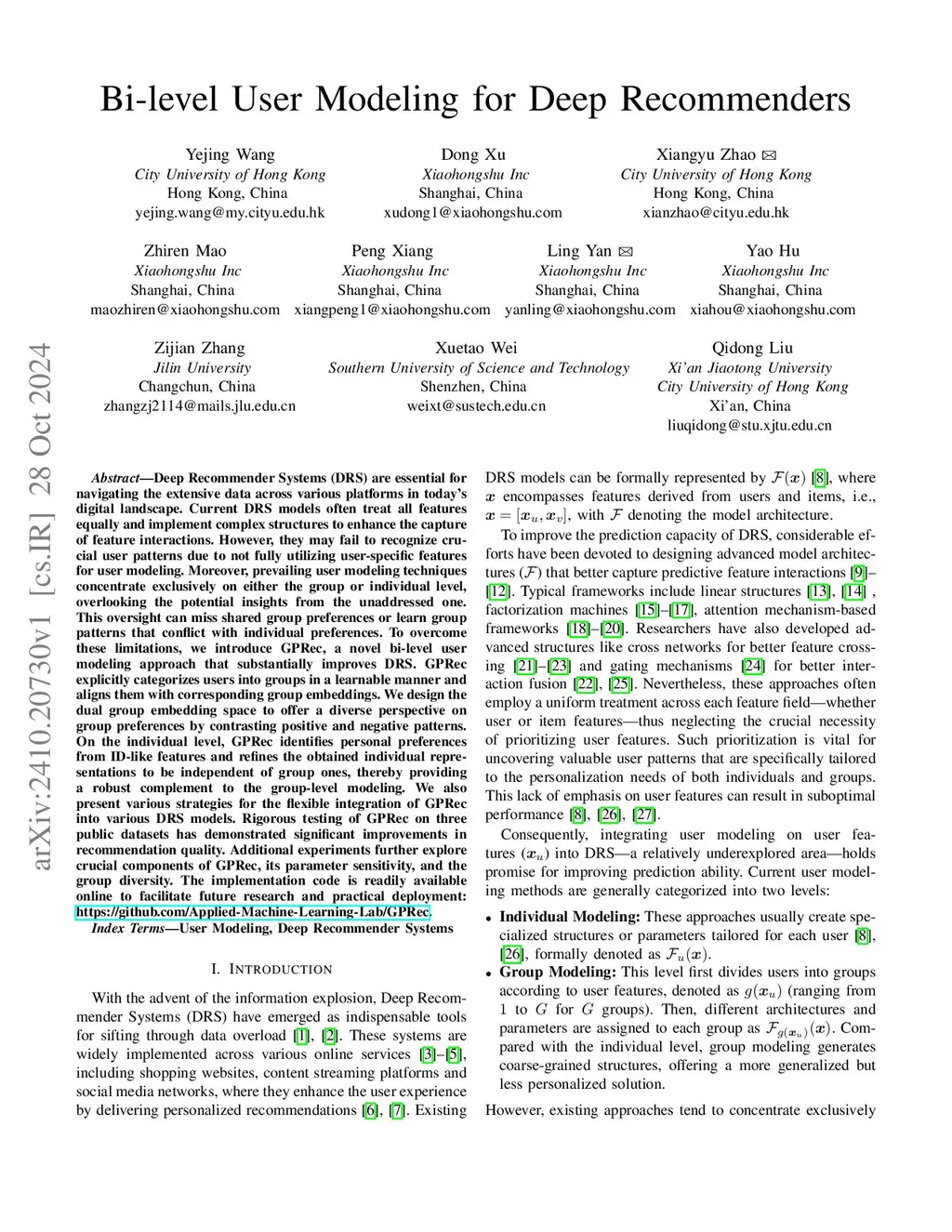 GPRec: Bi-level User Modeling for Deep Recommenders