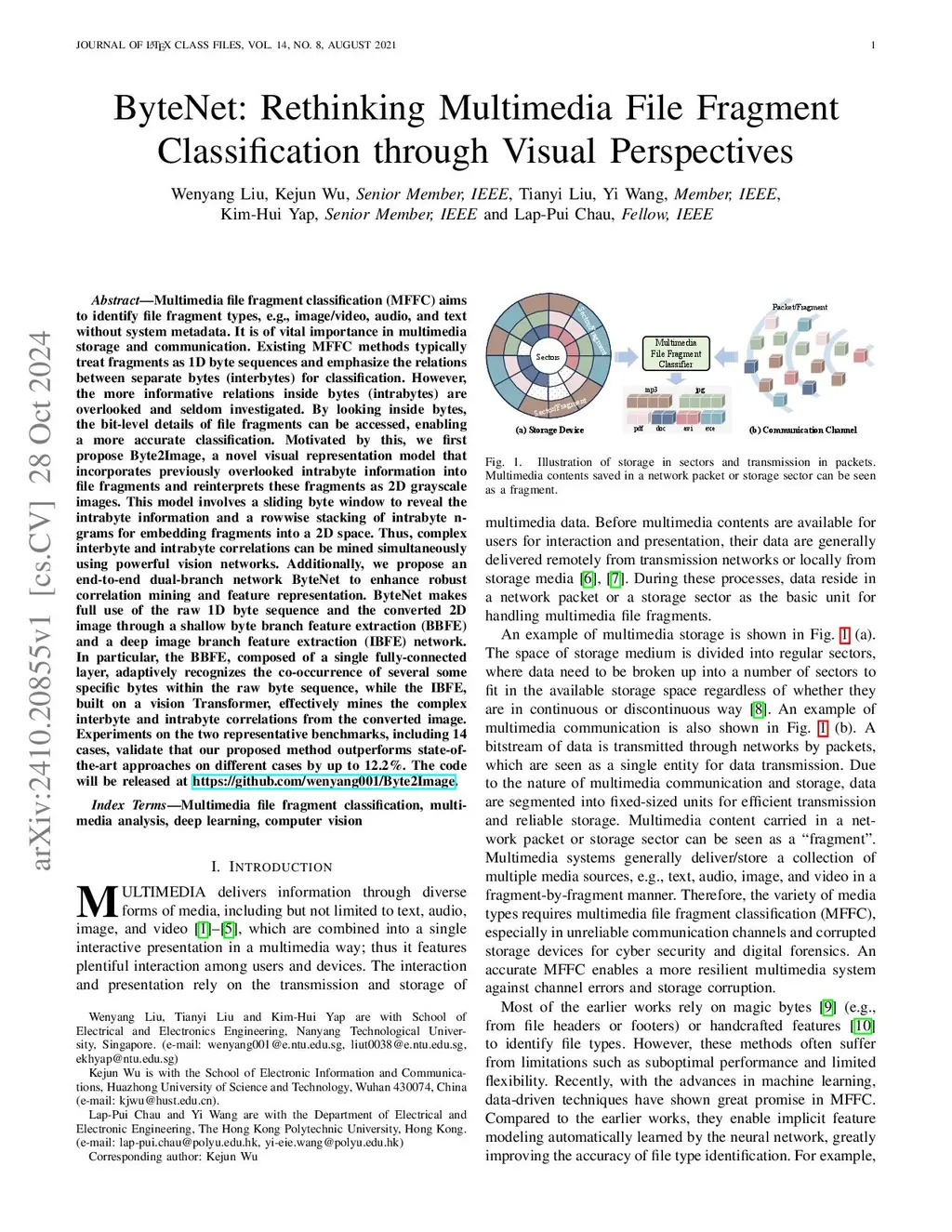 ByteNet: Rethinking Multimedia File Fragment Classification through