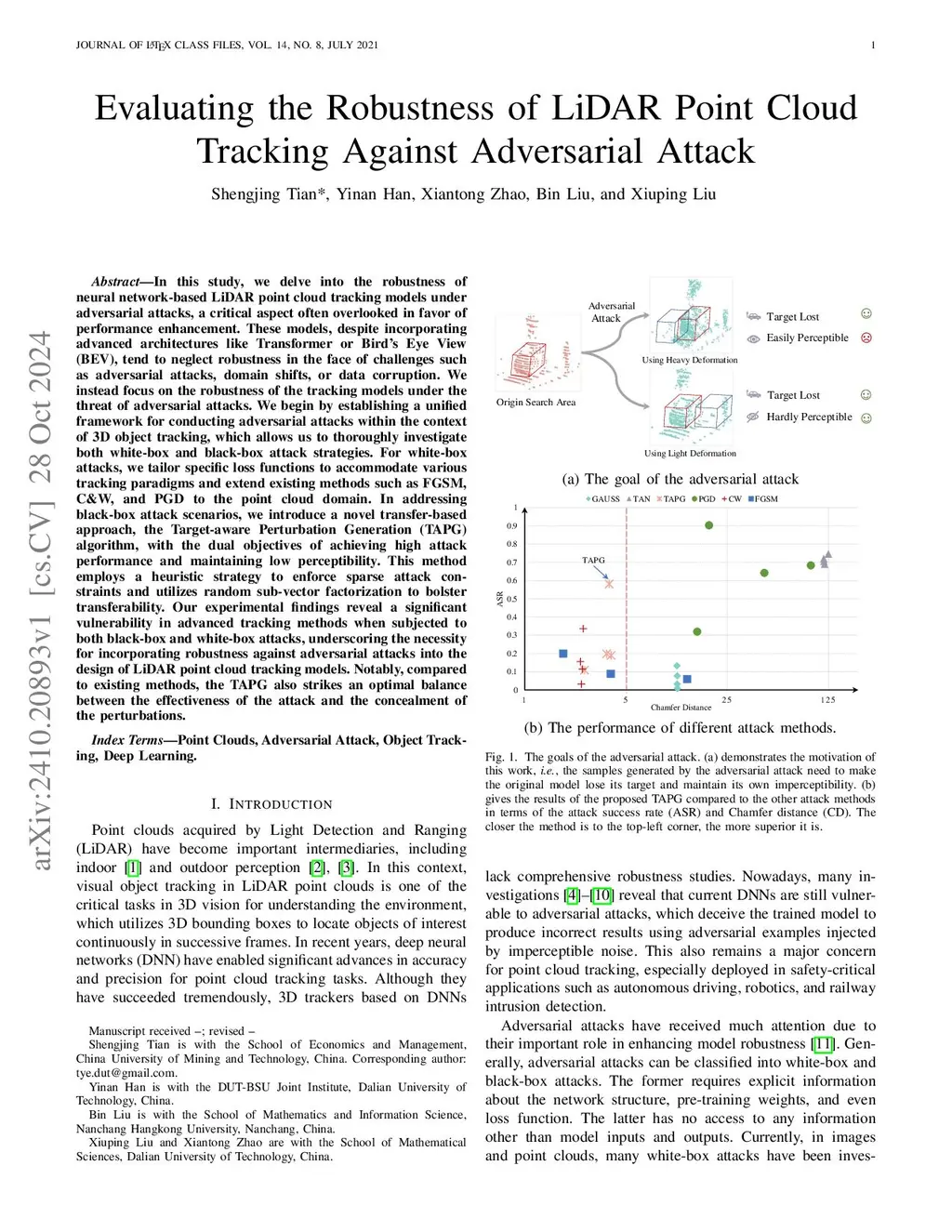 In this study, we delve into the robustness of neural network-based LiDAR point cloud tracking models under adversarial attacks, a critical aspect often overlooked in favor of performance enhancement. These models, despite incorporating advanced architectures like Transformer or Bird's Eye View (BEV), tend to neglect robustness in the face of challenges such as adversarial attacks, domain shifts, or data corruption. We instead focus on the robustness of the tracking models under the threat of adversarial attacks. We begin by establishing a unified framework for conducting adversarial attacks within the context of 3D object tracking, which allows us to thoroughly investigate both white-box and black-box attack strategies. For white-box attacks, we tailor specific loss functions to accommodate various tracking paradigms and extend existing methods such as FGSM, C\&W, and PGD to the point cloud domain. In addressing black-box attack scenarios, we introduce a novel transfer-based approach, the Target-aware Perturbation Generation (TAPG) algorithm, with the dual objectives of achieving high attack performance and maintaining low perceptibility. This method employs a heuristic strategy to enforce sparse attack constraints and utilizes random sub-vector factorization to bolster transferability. Our experimental findings reveal a significant vulnerability in advanced tracking methods when subjected to both black-box and white-box attacks, underscoring the necessity for incorporating robustness against adversarial attacks into the design of LiDAR point cloud tracking models. Notably, compared to existing methods, the TAPG also strikes an optimal balance between the effectiveness of the attack and the concealment of the perturbations.
