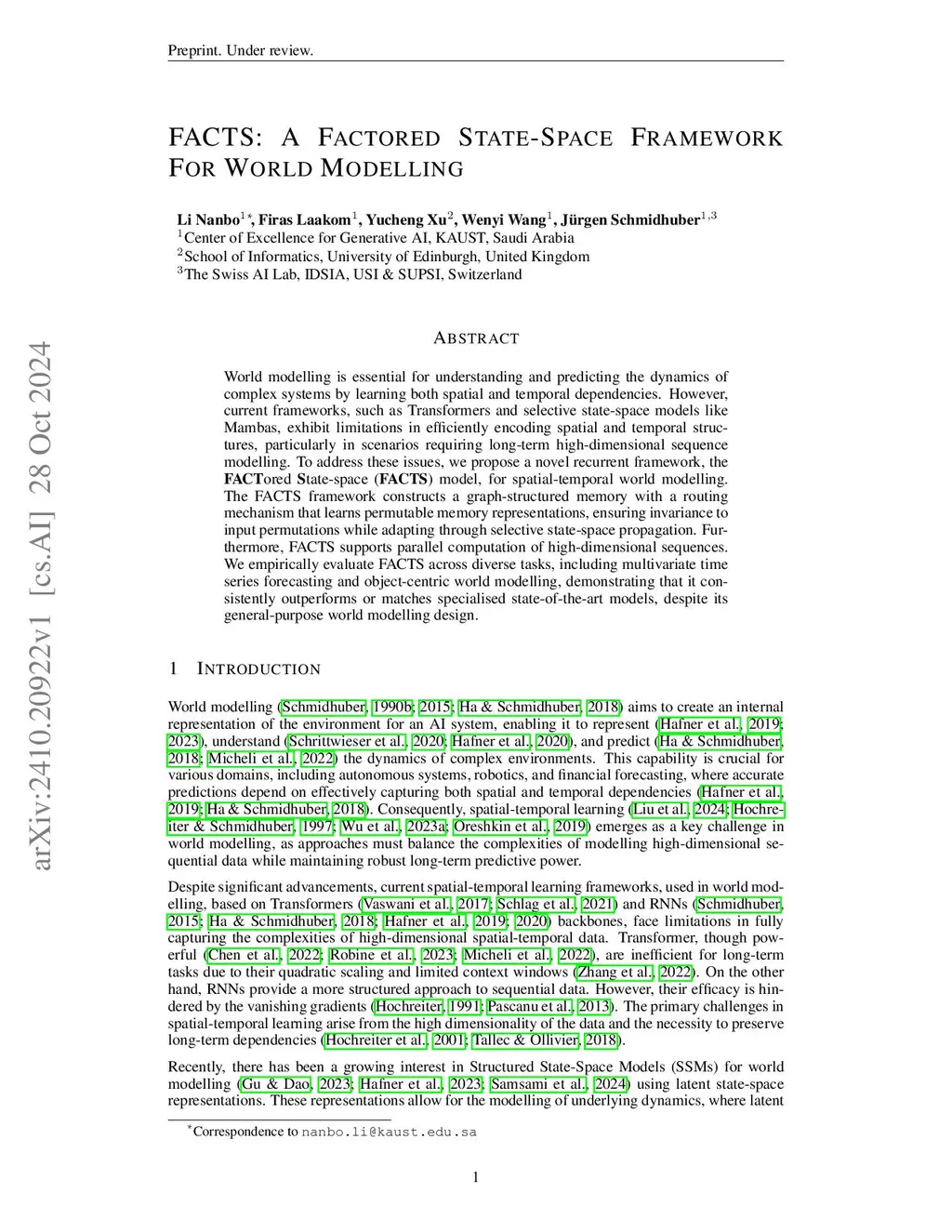 FACTS: A Factored State-Space Framework For World Modelling