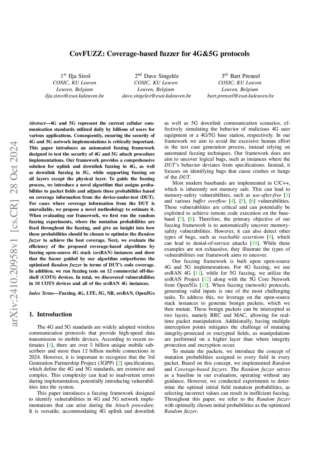 CovFUZZ: Coverage-based fuzzer for 4G&5G protocols