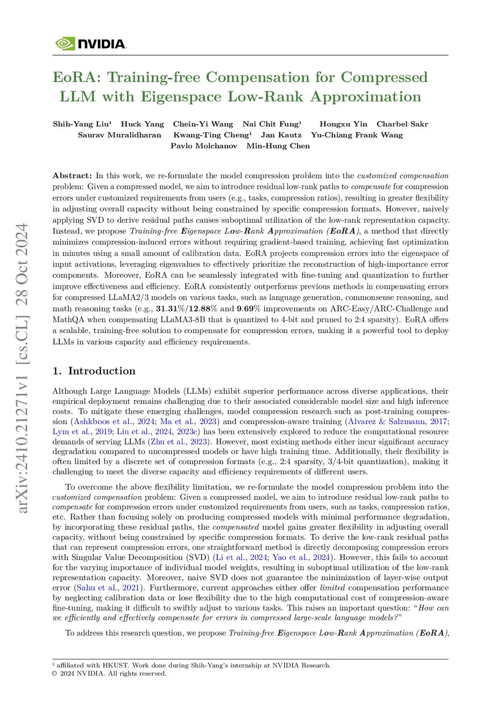 EoRA: Fine-tuning-free Compensation for Compressed LLM with Eigenspace Low-Rank Approximation