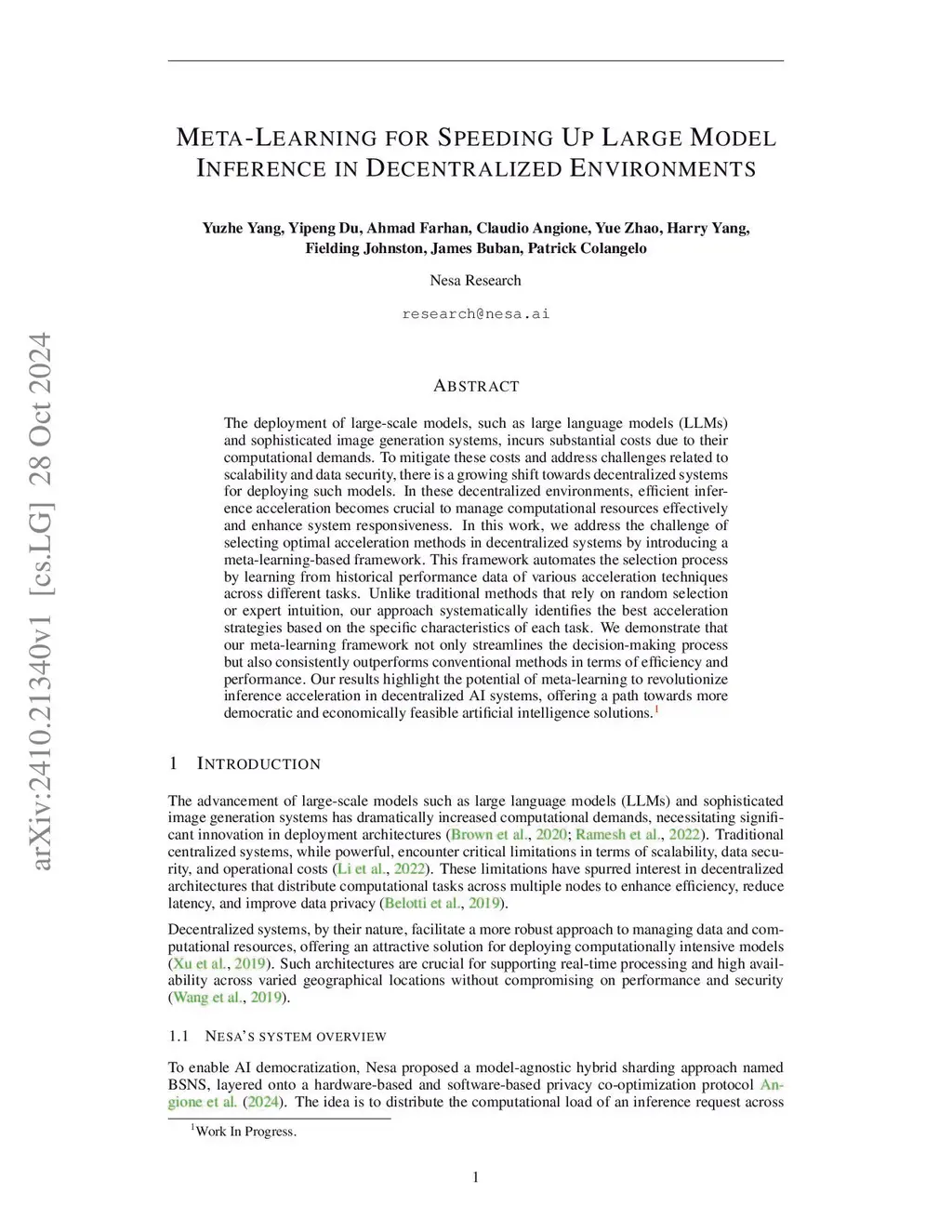 Meta-Learning for Speeding Up Large Model Inference in Decentralized